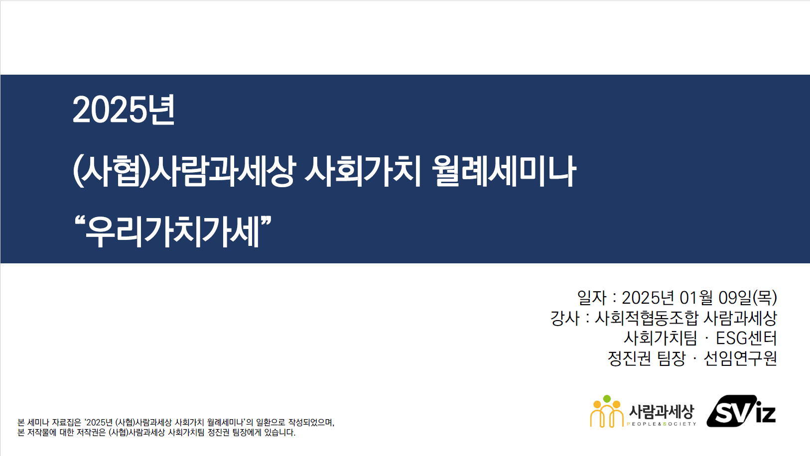 ¾È³çÇϼ¼¿ä.»çȸ°¡Ä¡ÆÀ(SViz) Á¤Áø±Ç ÆÀÀåÀÔ´Ï´Ù.¿À´Ã 1¿ù 9ÀÏ, »çȸÀûÇùµ¿Á¶ÇÕ »ç¶÷°ú¼¼»óÀÇ »çȸ°¡Ä¡ÆÀ Á¤Áø±Ç ÆÀÀåÀÌ ½Ç½ÃÇÑ"2025³â »çȸÀûÇùµ¿Á¶ÇÕ »ç¶÷°ú¼¼..