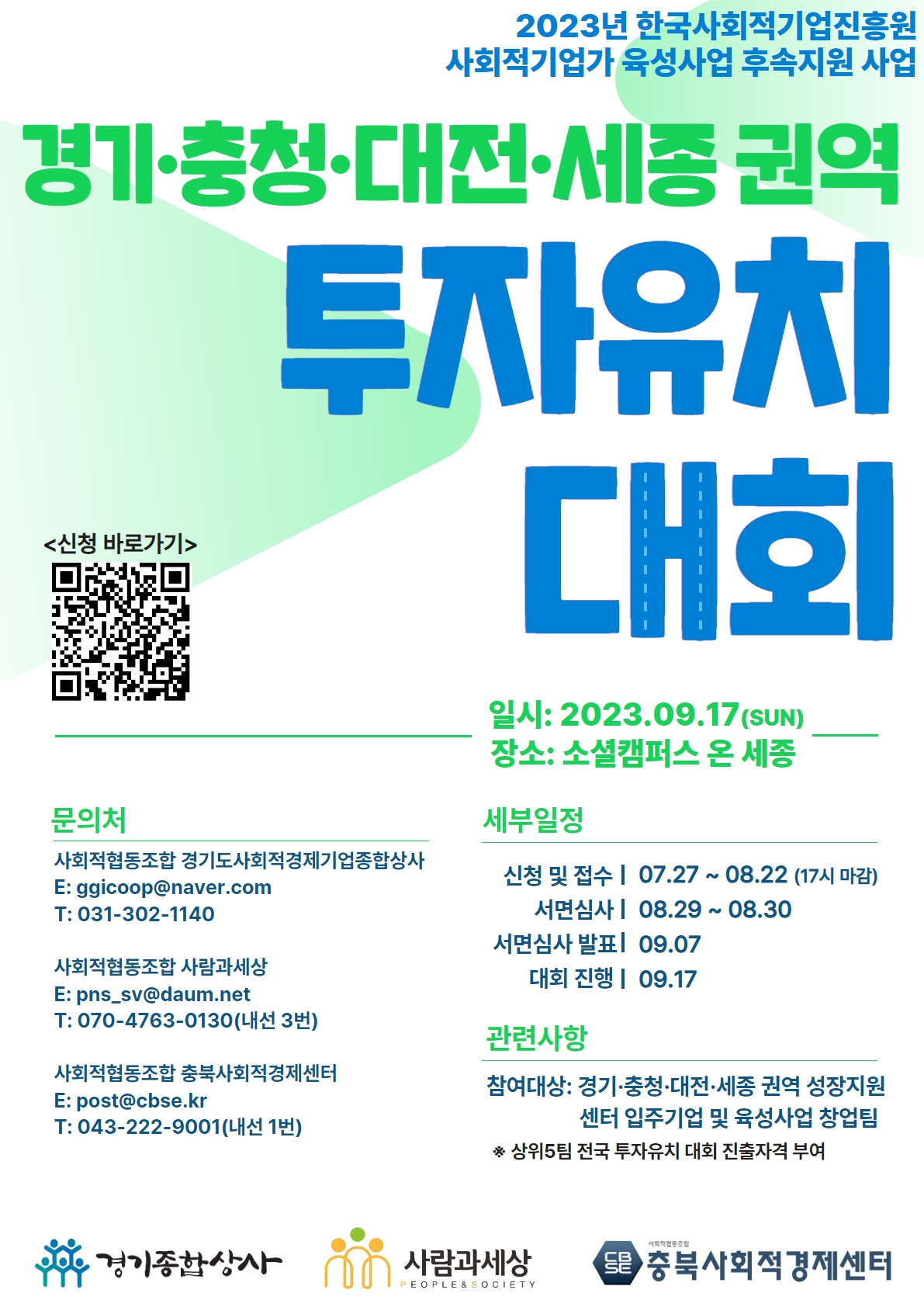 Á¦¸ñ [¾È³»] °æ±â¡¤ÃæÃ»¡¤´ëÀü¡¤¼¼Á¾ ±Ç¿ª ÅõÀÚÀ¯Ä¡ ´ëȸ(»çȸÀû±â¾÷°¡ À°¼º»ç¾÷ ÈļÓÁö¿ø»ç¾÷)