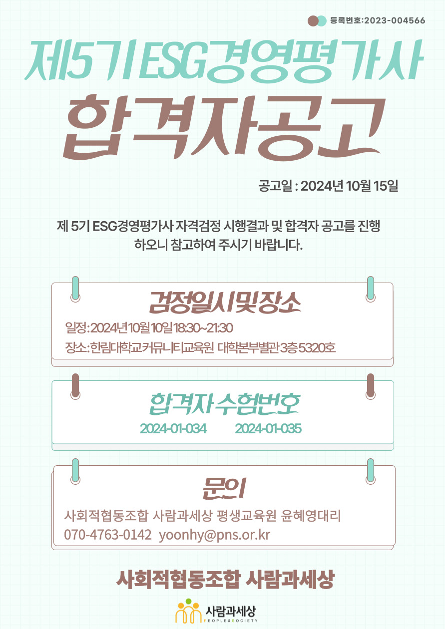 Á¦5±â ESG°æ¿µÆò°¡»ç ÇÕ°ÝÀÚ°ø°í
