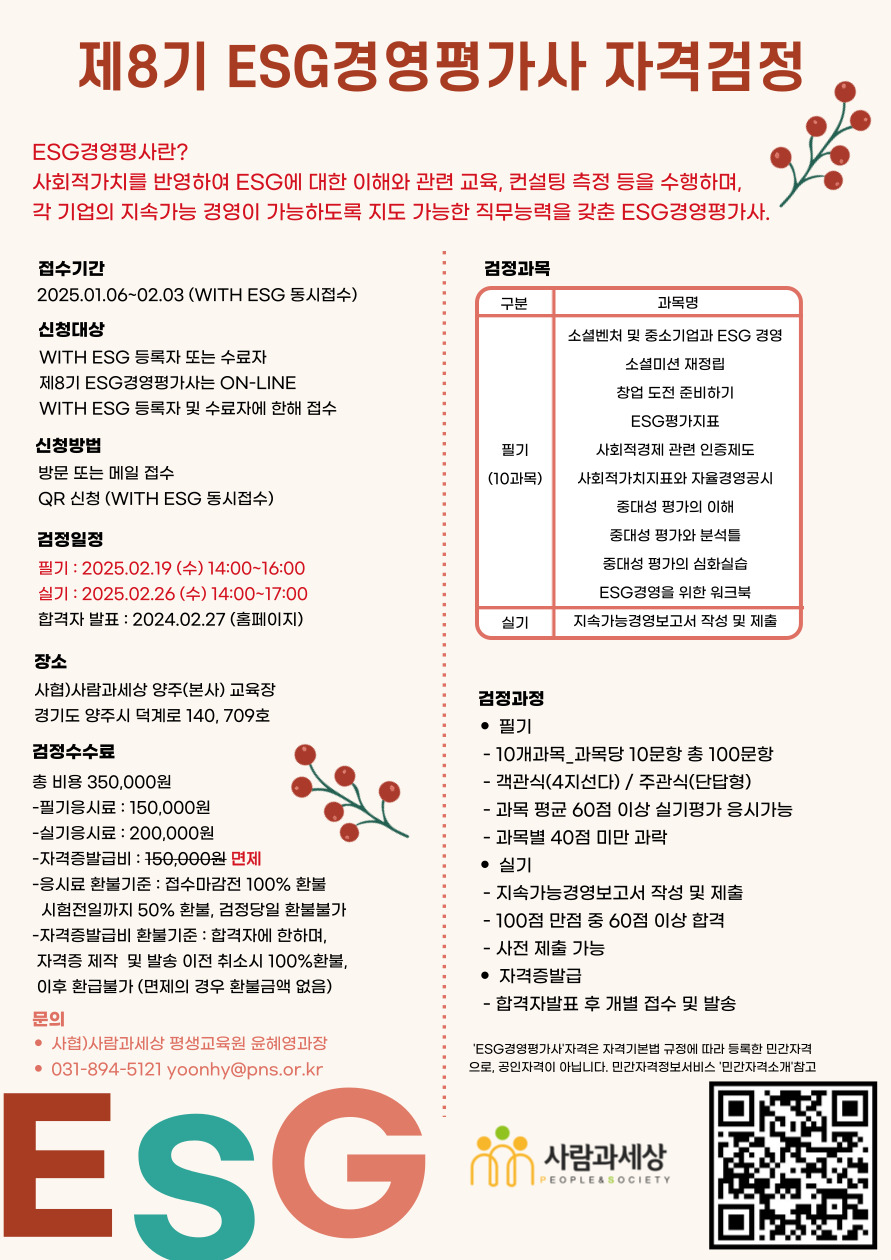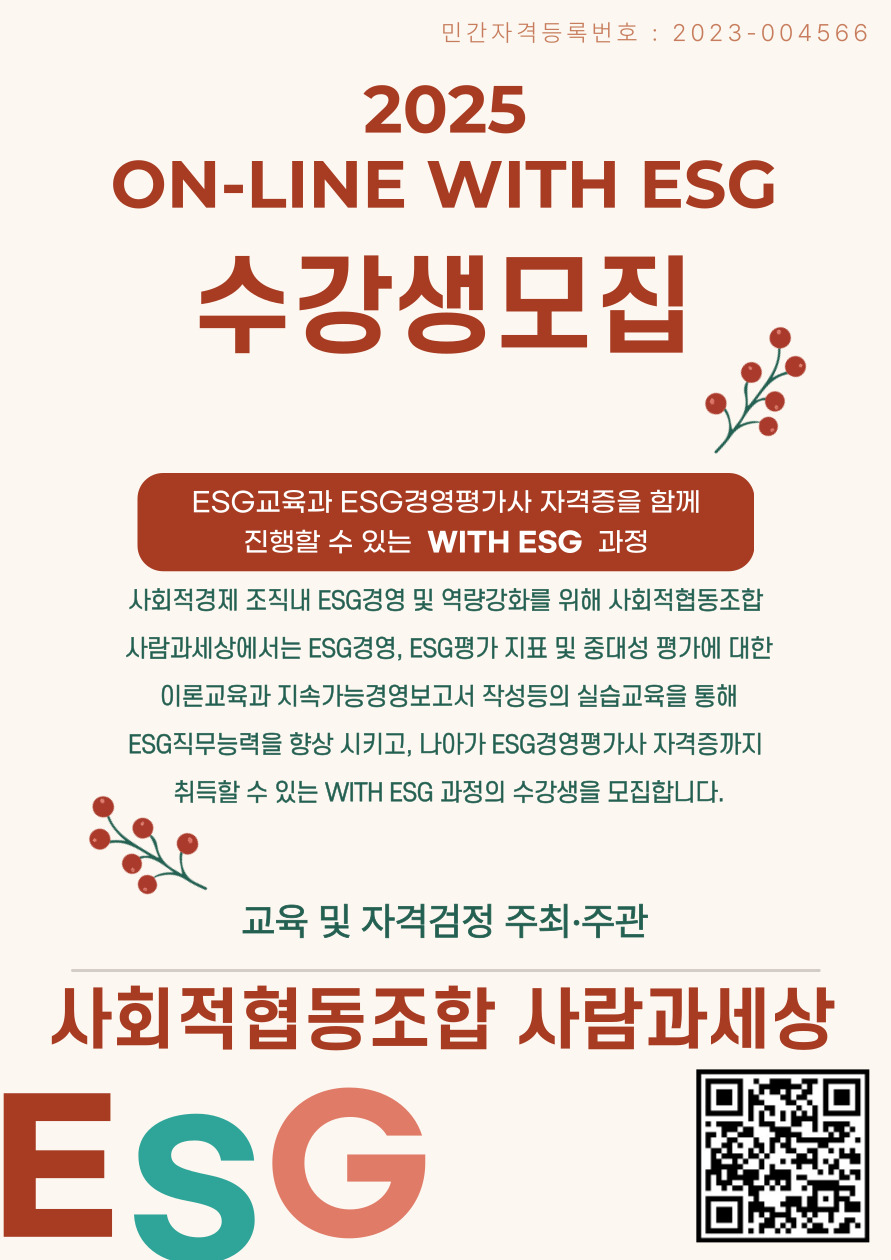 2025 ON-LINE WITH ESG±³À°°úÁ¤ ½Åû Á¢¼ö(Á¦8±â ESG°æ¿µÆò°¡»ç ÀڰݰËÁ¤ ½Åû Á¢¼ö Æ÷ÇÔ)