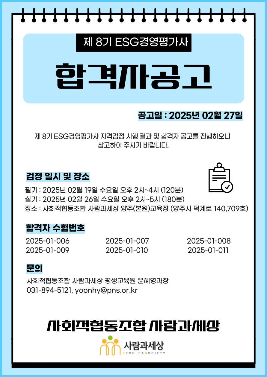 °øÁö °øÁö»çÇ× Á¦8±â ESG°æ¿µÆò°¡»ç ÇÕ°ÝÀÚ°ø°í pnscoop 2025-02-27