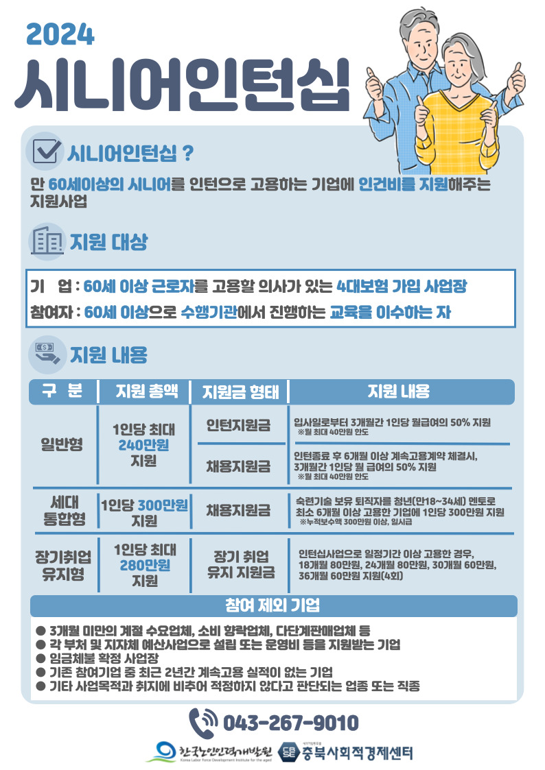 ÃæºÏ»çȸÀû°æÁ¦¼¾ÅÍ´Â º¸°Çº¹ÁöºÎ¿Í Çѱ¹³ëÀÎÀη°³¹ß¿øÀÇ ¡¸2024³â Ãë¾÷Çü »ç¾÷¡¹À» À§Å¹ ¹Þ¾Æ ¼öÇà±â°üÀ¸·Î¼ ¿î¿µÇϰí ÀÖ½À´Ï´Ù.¡¸2024³â Ãë¾÷Çü »ç¾÷¡¹ Áß "½Ã´Ï¾îÀÎÅϽÊ" Àº 60¼¼ ÀÌ»óÀÎ ÀÚ¸¦ ÀÎÅÏÀ¸·Î ä¿ëÇÑ..