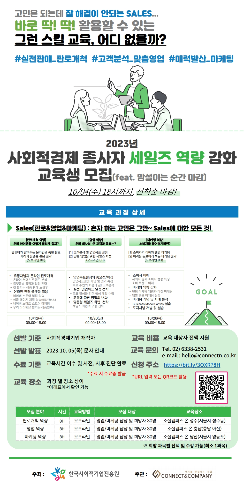 Çѱ¹»çȸÀû±â¾÷ÁøÈï¿ø¿¡¼´Â »çȸÀû°æÁ¦Á¶Á÷ Á¾»çÀÚÀÇÆÇ·Î°³Ã´ / ¿µ¾÷/ ¸¶ÄÉÆÃ ¿ª·® °È¸¦ À§ÇØ ¾Æ·¡¿Í °°ÀÌ ±³À°À» ¿î¿µÇÕ´Ï´Ù. ¼±Âø¼øÀ¸·Î ÁøÇàµÇ´Â º» ±³À°Àº Àü °úÁ¤ ¹«·áÀÌ¿À¸ç, ¿ÀÇÁ¶óÀÎÀ¸·Î ÁøÇàµÇ¿À´Ï°¢ °ú..
