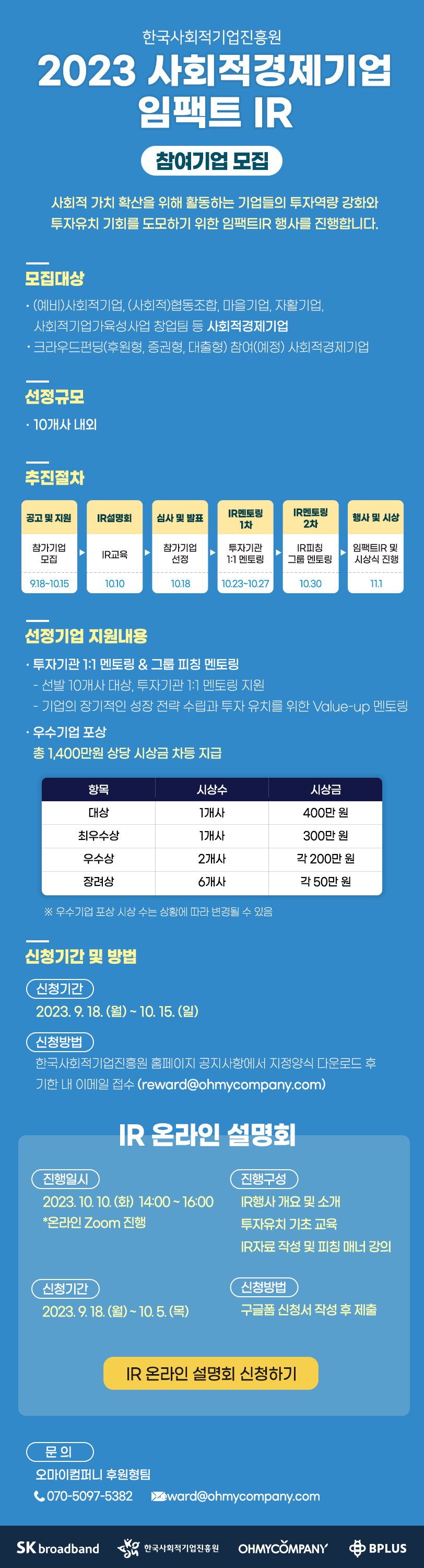 IR ¿Â¶óÀÎ ¼³¸íȸ ½Åû ¸µÅ© ¢º https://docs.google.com/forms/d/e/1FAIpQLSfH8xbo0mILGjWcHVQ_DROLvgCPIlYF_7LafD0idO8IDqnBRw/viewform?usp=sharing
