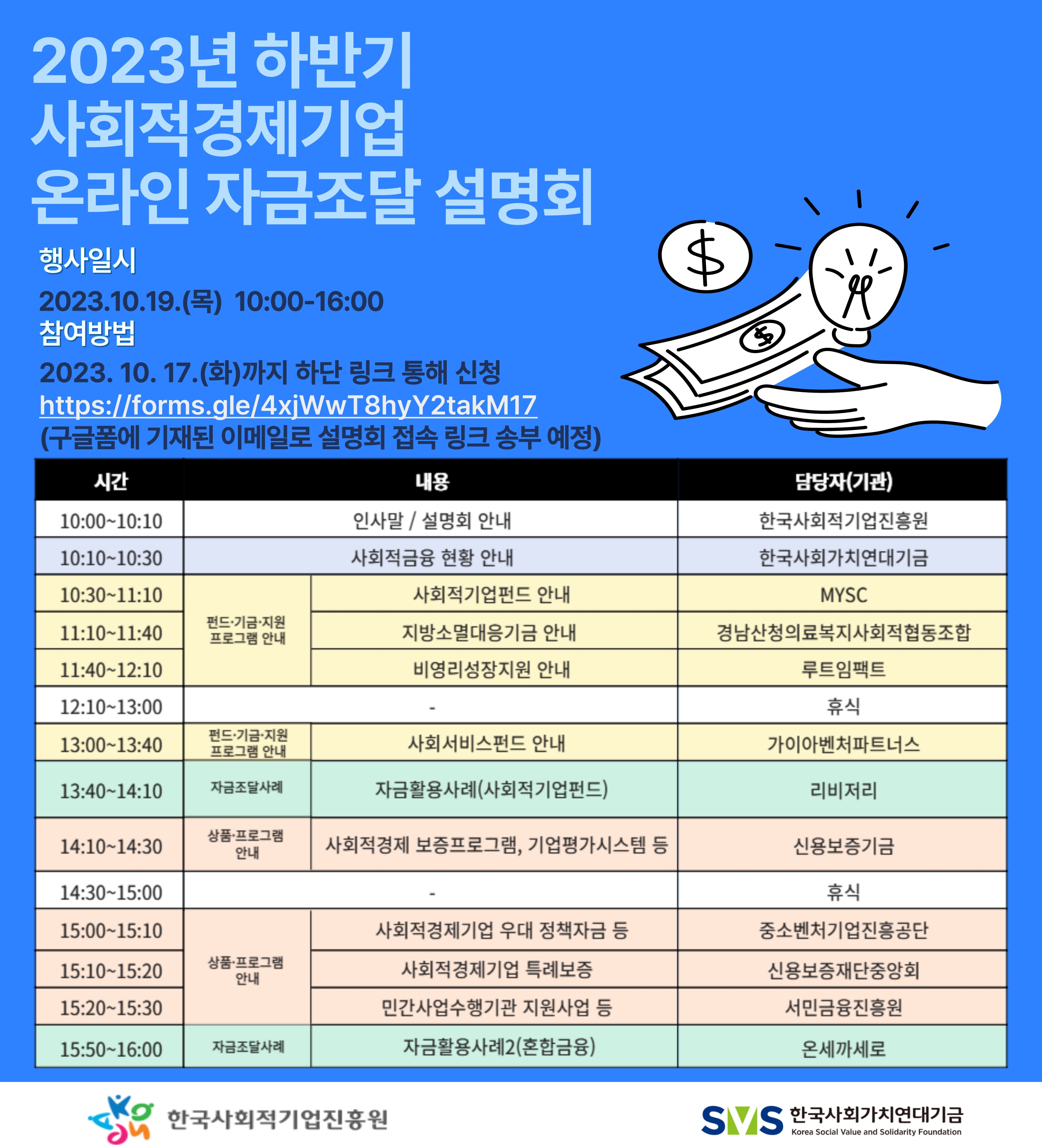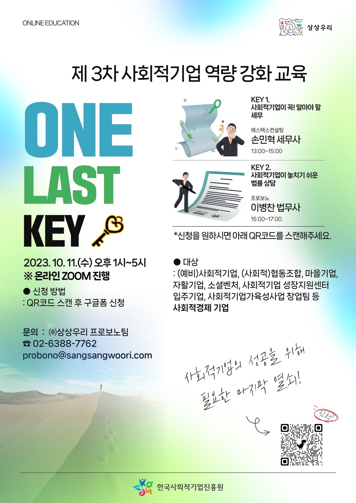 < Á¦ 2Â÷ »çȸÀû±â¾÷ ¿ª·® °È ±³À° >1. ±³À° ÀϽÃ: 10.11.(¼ö) 13:00~17:002. ÁøÇà ¹æ½Ä: ¿Â¶óÀÎ ZOOM(*±³À° ´çÀÏ ¿ÀÈÄ 12½Ã°æ ZOOM ¸µÅ© À̸ÞÀÏ ¹ß¼Û)3. ±³À° ³»¿ë 1±³½Ã - »çȸÀû±â¾÷ÀÌ ²À ¾Ë¾Æ¾ß ÇÒ ¼¼¹«(¼Õ¹Î..