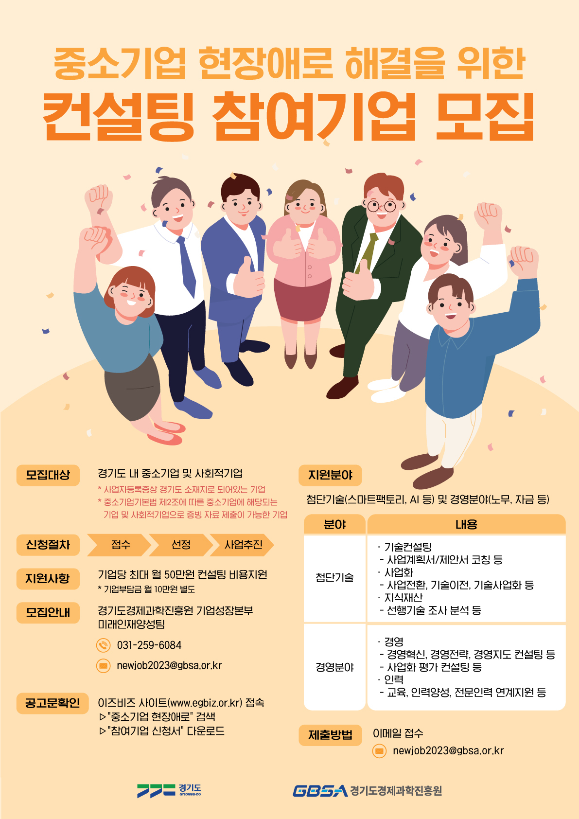 2023 Áß¼Ò±â¾÷ ÇöÀå¾Ö·Î ÇØ°áÀ» À§ÇÑ ÄÁ¼³ÆÃ Âü¿©±â¾÷ ¸ðÁý °æ±âµµ°æÁ¦°úÇÐÁøÈï¿ø¿¡¼´Â ÇöÀå °æÇèÀÌ ¿ì¼öÇÑ ÅðÁ÷ÀηÂÀ» Ȱ¿ëÇÏ¿© °æ±âµµ ¼ÒÀçÇÏ´Â Áß¼Ò±â¾÷À» ´ë»óÀ¸·Î ºÐ¾ßº°(÷´Ü±â¼ú, °æ¿µºÐ¾ß) ±â¾÷ ¸Â..